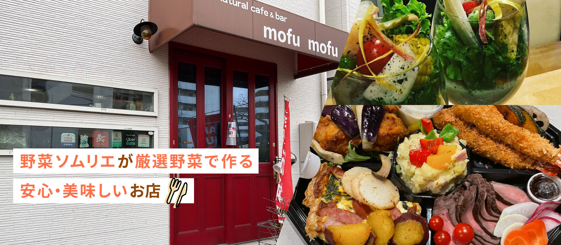 野菜ソムリエが厳選した国産野菜と、体に優しい調味料にこだわる「Natural cafe & bar mofu mofu(ナチュラルカフェアンドバー モフモフ)」です。